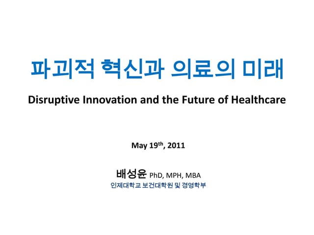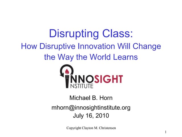 1. The Innovator’s Prescription: How Disruptive Innovation Can Transform Health Care Clayton Christensen Harvard Business School [email_address] 06/09/09 Copyright Clayton M. Christensen