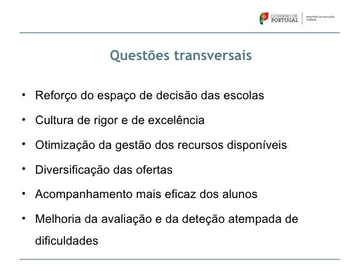 2. 2. Questões transversais• Reforço do espaço de decisão das escolas• Cultura de rigor e de excelência• Otimização da gestão dos recursos disponíveis• Diversificação das ofertas• Acompanhamento mais eficaz dos alunos• Melhoria da avaliação e da deteção atempada de dificuldades