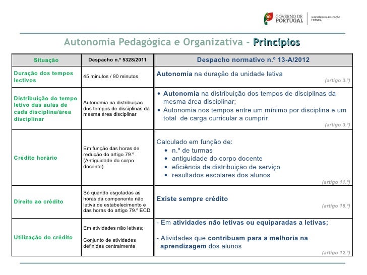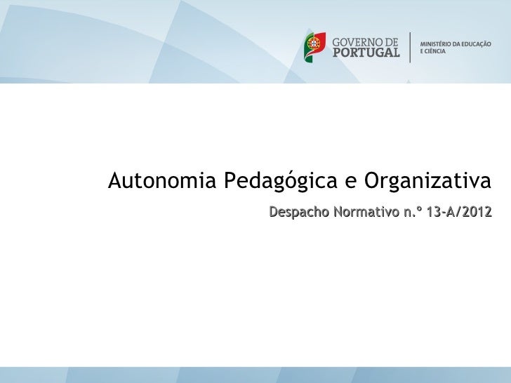 42. 42. Autonomia Pedagógica e Organizativa Despacho Normativo n.º 13-A/2012