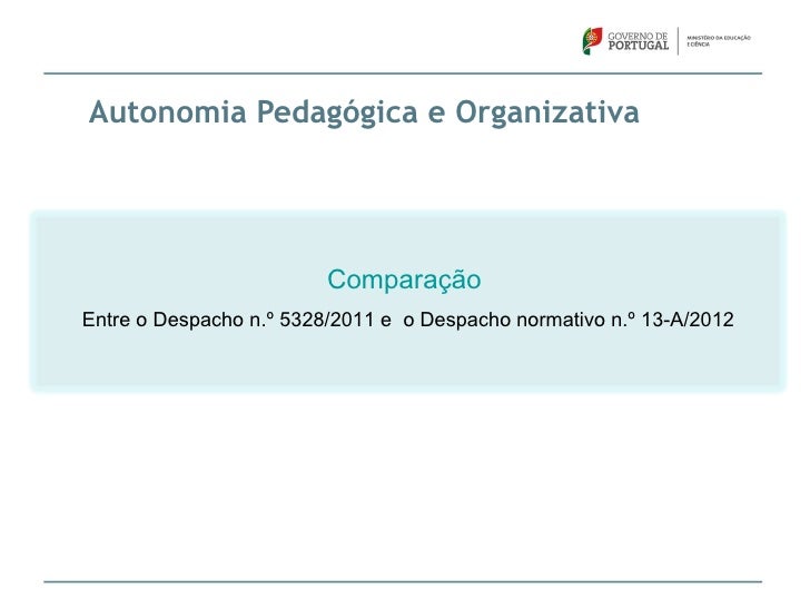 46. 46. Autonomia Pedagógica e Organizativa ComparaçãoEntre o Despacho n.º 5328/2011 e o Despacho normativo n.º 13-A/2012