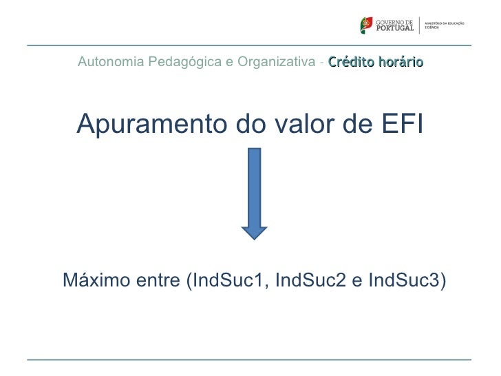 60. 60. Autonomia Pedagógica e Organizativa – Crédito horário Apuramento do valor de EFIMáximo entre (IndSuc1, IndSuc2 e IndSuc3)