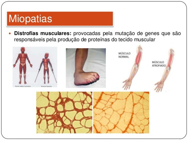 5. 5.  Distrofias musculares: provocadas pela mutação de genes que são responsáveis pela produção de proteínas do tecido muscular Miopatias