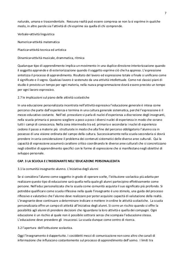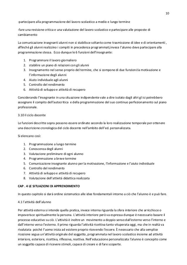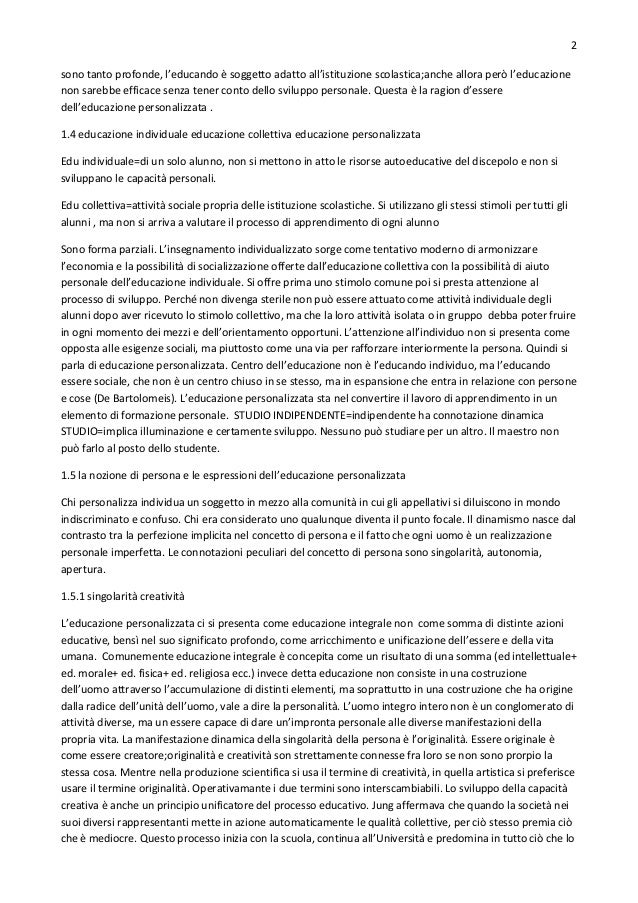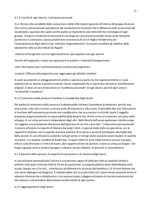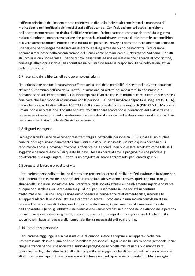 Nell’educazione personalizzata ciò che importa è il lavoro dell’alunno in quanto ele...