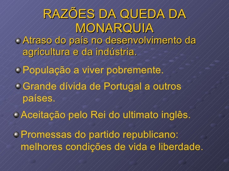 Apresentação sobre as razões que conduziram ao fim da monarquia em Portugal.