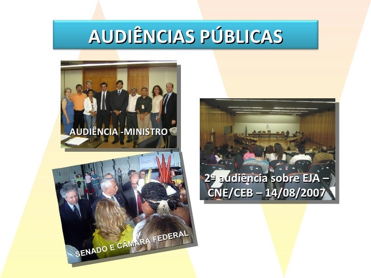 17. 18. AUDIÊNCIA -MINISTRO 2ª audiência sobre EJA – CNE/CEB – 14/08/2007 SENADO E CÂMARA FEDERAL AUDIÊNCIAS PÚBLICAS