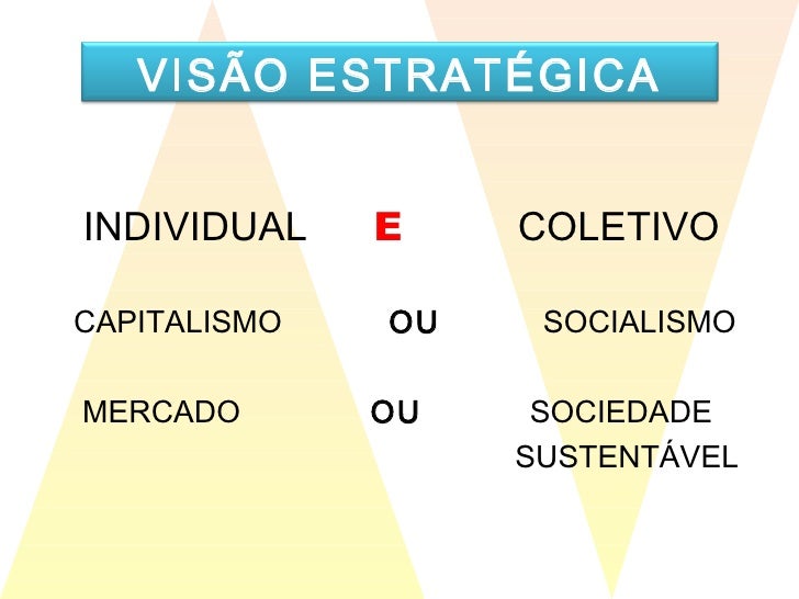23. 24. INDIVIDUAL E COLETIVO CAPITALISMO OU SOCIALISMO MERCADO OU SOCIEDADE SUSTENTÁVEL VISÃO ESTRATÉGICA
