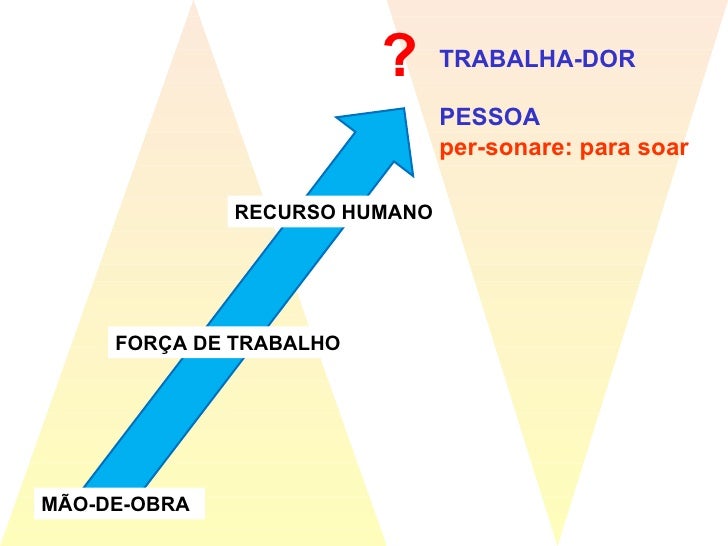 34. 35. TRABALHA-DOR PESSOA per-sonare: para soar RECURSO HUMANO FORÇA DE TRABALHO MÃO-DE-OBRA ?