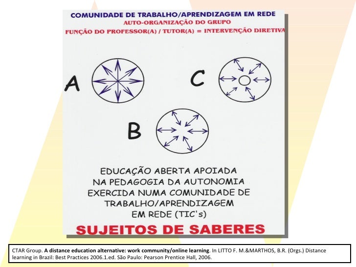40. 41. CTAR Group. A distance education alternative: work community/online learning . In LITTO F. M.&MARTHOS, B.R. (Orgs.) Distance learning in Brazil: Best Practices 2006.1.ed. São Paulo: Pearson Prentice Hall, 2006.