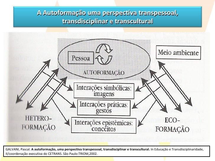 42. 43. GALVANI, Pascal. A autoformação, uma perspectiva transpessoal, transdisciplinar e transcultural. In Educação e Transdisciplinaridade, II/coordenação executiva do CETRANS. São Paulo:TRIOM,2002. A Autoformação uma perspectiva transpessoal, transdisciplinar e transcultural