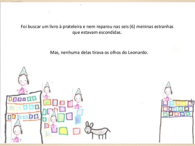 8. 8. Foi buscar um livro à prateleira e nem reparou nas seis (6) meninas estranhas que estavam escondidas. Mas, nenhuma delas tirava os olhos do Leonardo.
