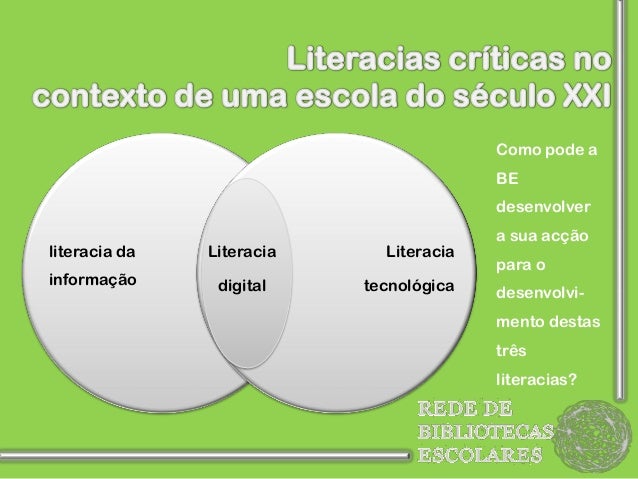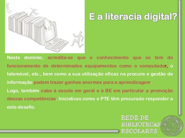 17. 17. Como pode a BE desenvolver a sua acçãoliteracia da Literacia Literacia para oinformação digital tecnológica desenvolvi- mento destas três literacias?