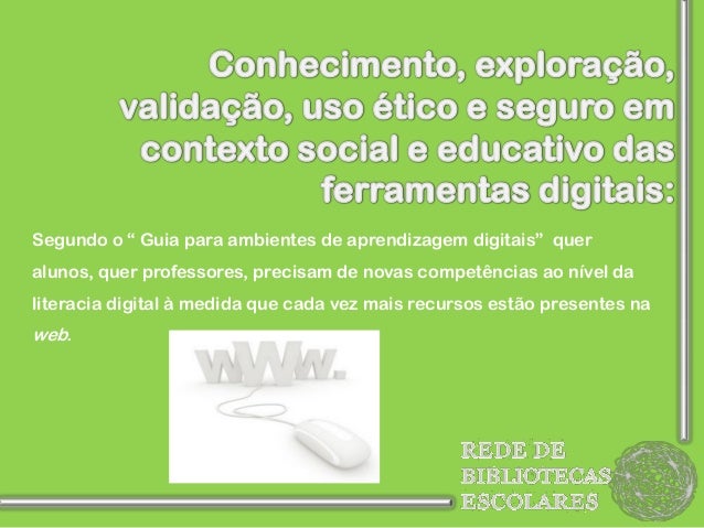 1. 1. Segundo o “ Guia para ambientes de aprendizagem digitais” queralunos, quer professores, precisam de novas competências ao nível daliteracia digital à medida que cada vez mais recursos estão presentes naweb.