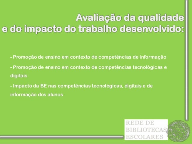 31. 31. - Promoção de ensino em contexto de competências de informação- Promoção de ensino em contexto de competências tecnológicas edigitais- Impacto da BE nas competências tecnológicas, digitais e deinformação dos alunos