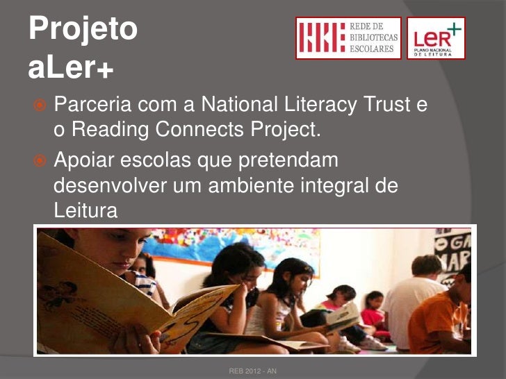 14. 14. ProjetoaLer+ Parceria com a National Literacy Trust e o Reading Connects Project. Apoiar escolas que pretendam desenvolver um ambiente integral de Leitura REB 2012 - AN