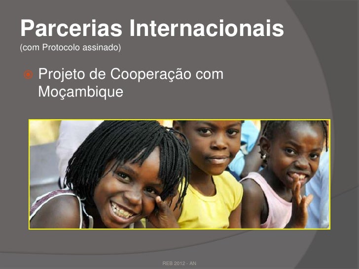 27. 27. Parcerias Internacionais(com Protocolo assinado) Projeto de Cooperação com Moçambique REB 2012 - AN