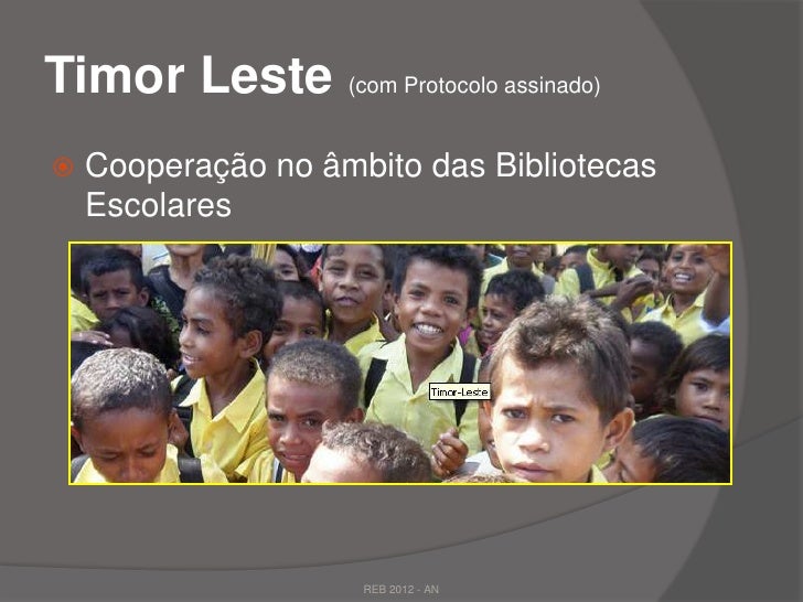 30. 30. Timor Leste (com Protocolo assinado) Cooperação no âmbito das Bibliotecas Escolares REB 2012 - AN
