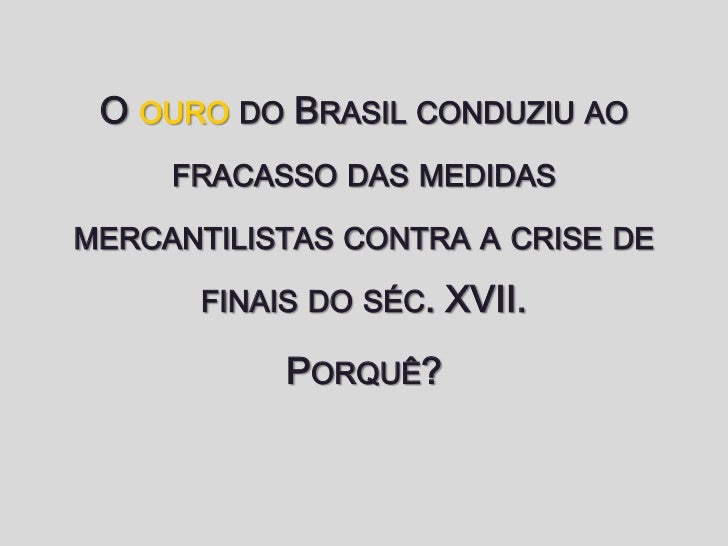21. 21. O OURO DO BRASIL CONDUZIU AO FRACASSO DAS MEDIDASMERCANTILISTAS CONTRA A CRISE DE FINAIS DO SÉC. XVII. PORQUÊ?