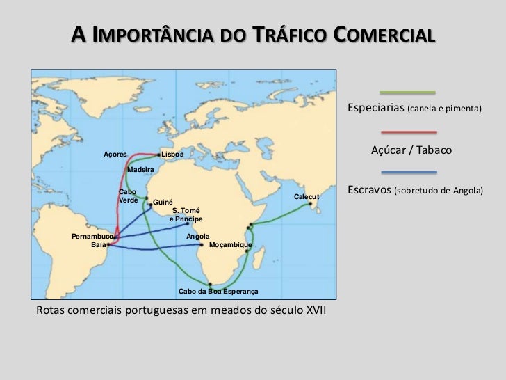 8. 8. A IMPORTÂNCIA DO TRÁFICO COMERCIAL Especiarias (canela e pimenta) Açores Lisboa Açúcar / Tabaco Madeira Cabo Calecut Escravos (sobretudo de Angola) Verde Guiné S. Tomé e Príncipe Pernambuco Angola Baía Moçambique Cabo da Boa EsperançaRotas comerciais portuguesas em meados do século XVII