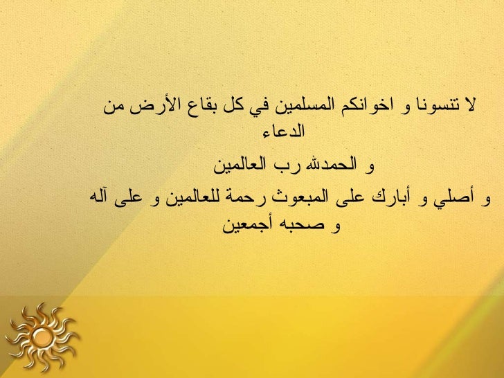 28. 28. ‫ل تنسونا و اخوانكم المسلمين في كل بقاع الرض من‬ ‫الدعاء‬ ‫و الحمدل رب العالمين‬‫و أصلي و أبارك على المبعوث رحمة للعالمين و على آله‬ ‫و صحبه أجمعين‬