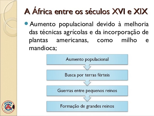 13. 13. A África entre os séculos XVI e XIXAumento populacional devido à melhoria das técnicas agrícolas e da incorporação de plantas americanas, como milho e mandioca;
