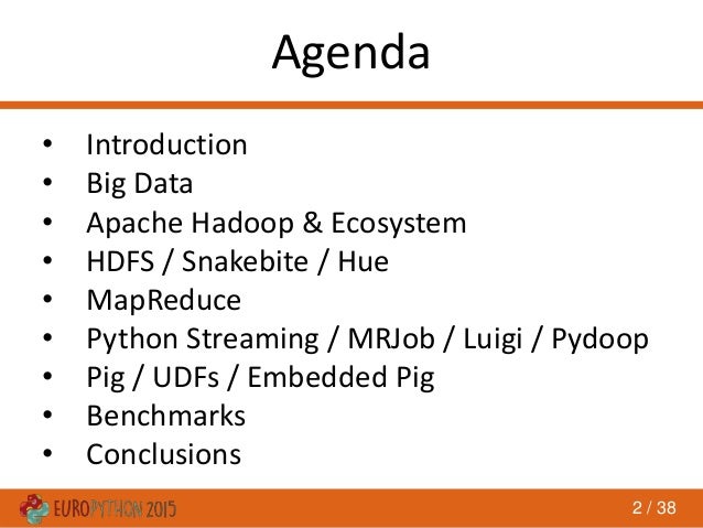 Big Data - these two words are heard so often nowadays. But what exactly is Big Data ? Can we, Pythonistas, enter the wonder world of Big Data ? The answer is definitely “Yes”.
