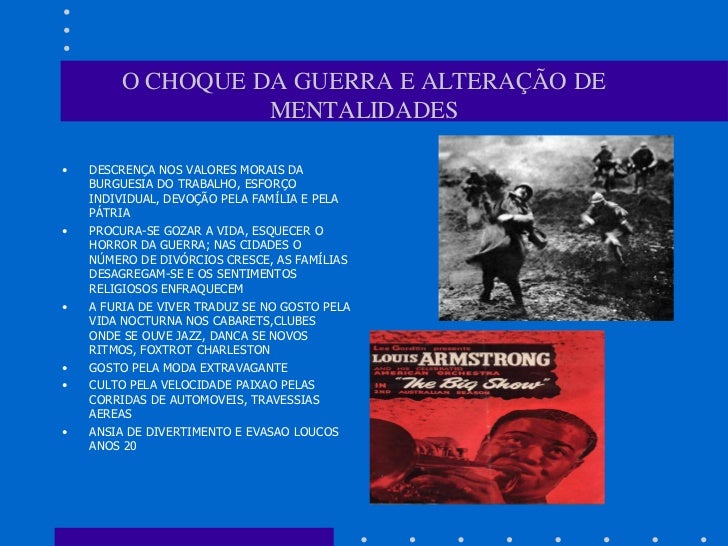 O CHOQUE DA GUERRA E ALTERAÇÃO DE                  MENTALIDADES•   DESCRENÇA NOS VALORES MORAIS DA    BURGUESIA DO TRABALH...