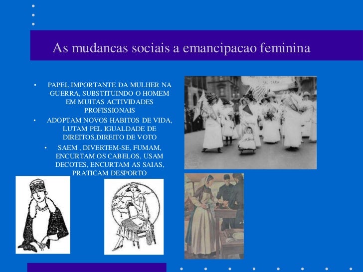 As mudancas sociais a emancipacao feminina•     PAPEL IMPORTANTE DA MULHER NA       GUERRA, SUBSTITUINDO O HOMEM          ...