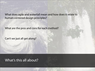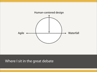 4. Human-centered design Agile Waterfall Where I sit in the great debate
