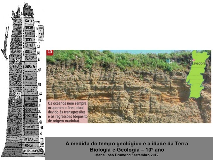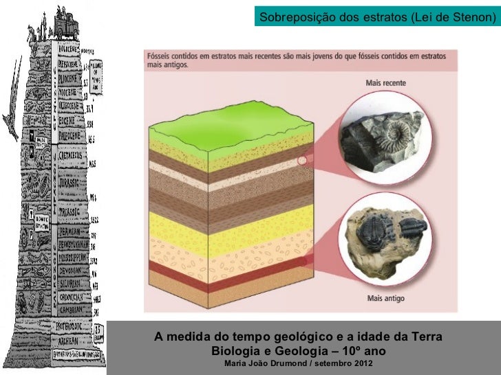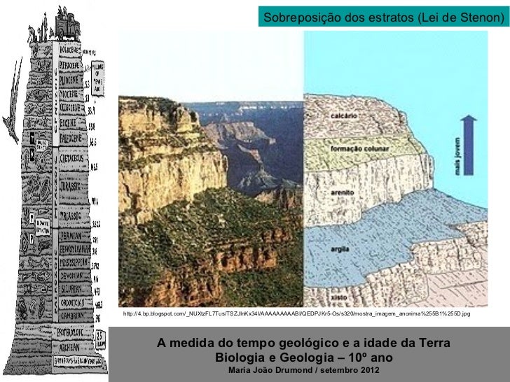 10. 10. Sobreposição dos estratos (Lei de Stenon)http://4.bp.blogspot.com/_NUXtzFL7Tus/TSZJInKx34I/AAAAAAAAABI/QEDPJKr5-Os/s320/mostra_imagem_anonima%255B1%255D.jpg A medida do tempo geológico e a idade da Terra Biologia e Geologia – 10º ano Maria João Drumond / setembro 2012