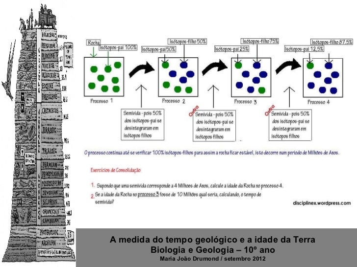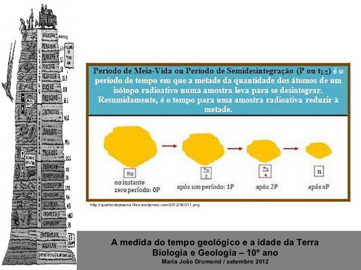 2. 2. Manual pág. 34 http://3.bp.blogspot.com/-0y_K8s2HOhM/TV5do6y3fdI/AAAAAAAAANo/S4sBzZfYBOs/s320/test.gifA medida do tempo geológico e a idade da Terra Biologia e Geologia – 10º ano Maria João Drumond / setembro 2012