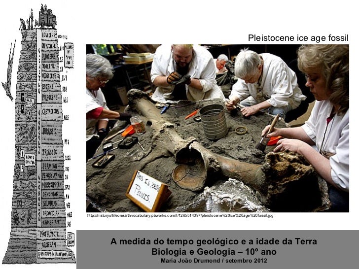 3. 3. Pleistocene ice age fossilhttp://historyoflifeonearthvocabulary.pbworks.com/f/1265514397/pleistocene%20ice%20age%20fossil.jpg A medida do tempo geológico e a idade da Terra Biologia e Geologia – 10º ano Maria João Drumond / setembro 2012