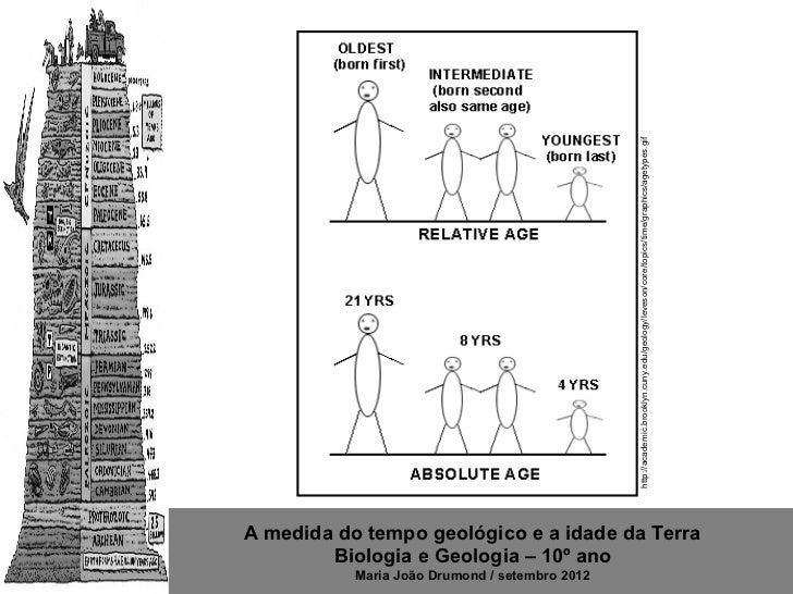 6. 6. http://academic.brooklyn.cuny.edu/geology/leveson/core/topics/time/graphics/agetypes.gifA medida do tempo geológico e a idade da Terra Biologia e Geologia – 10º ano Maria João Drumond / setembro 2012
