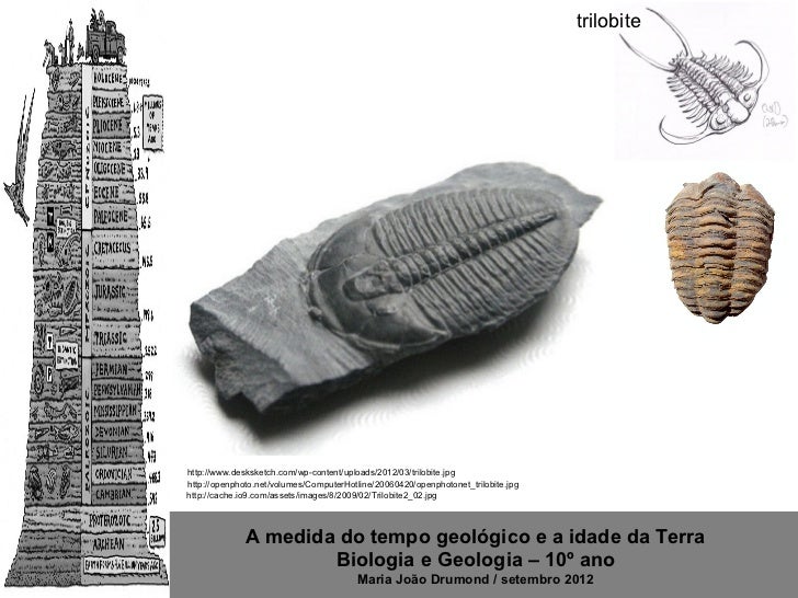 9. 9. trilobitehttp://www.desksketch.com/wp-content/uploads/2012/03/trilobite.jpghttp://openphoto.net/volumes/ComputerHotline/20060420/openphotonet_trilobite.jpghttp://cache.io9.com/assets/images/8/2009/02/Trilobite2_02.jpg A medida do tempo geológico e a idade da Terra Biologia e Geologia – 10º ano Maria João Drumond / setembro 2012