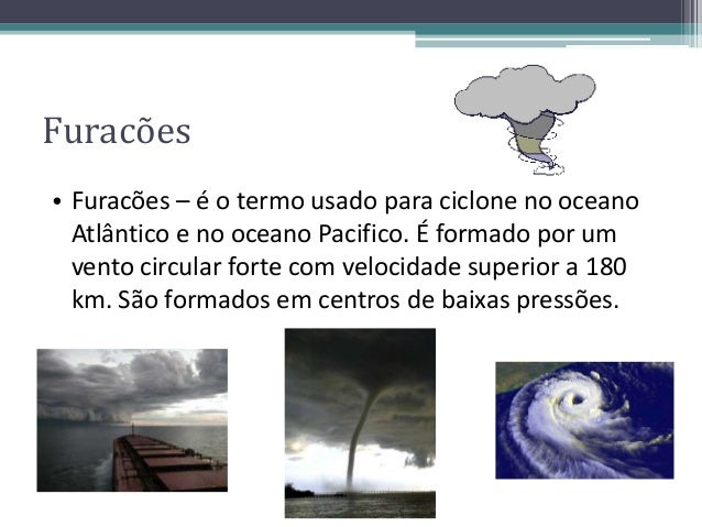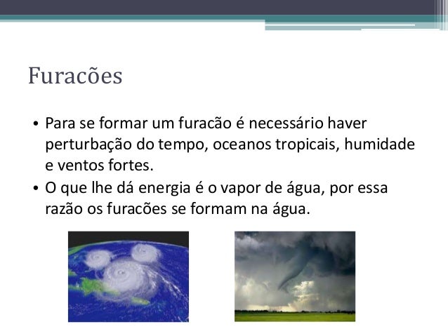 15. 15. Furacões• Para se formar um furacão é necessário haverperturbação do tempo, oceanos tropicais, humidadee ventos fortes.• O que lhe dá energia é o vapor de água, por essarazão os furacões se formam na água.