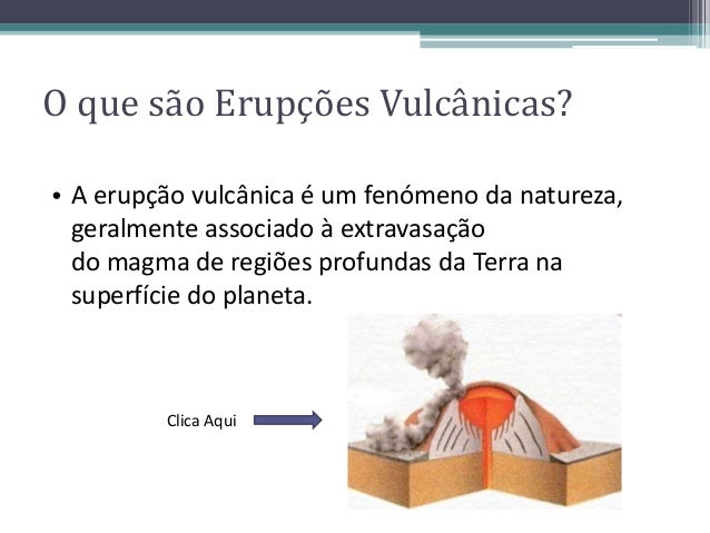 22. 22. • A erupção vulcânica é um fenómeno da natureza,geralmente associado à extravasaçãodo magma de regiões profundas da Terra nasuperfície do planeta.O que são Erupções Vulcânicas?Clica Aqui