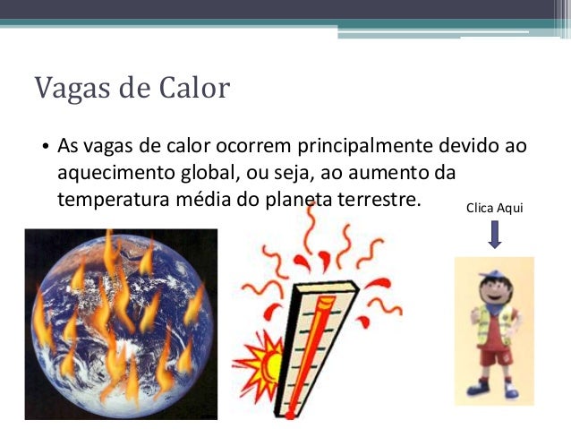 35. 35. Vagas de Calor• As vagas de calor ocorrem principalmente devido aoaquecimento global, ou seja, ao aumento datemperatura média do planeta terrestre. Clica Aqui