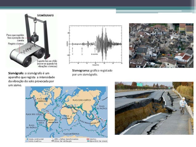 7. 7. Sismógrafo: o sismógrafo é umaparelho que regista a intensidadeda vibração do solo provocada porum sismo.Sismograma: gráfico registadopor um sismógrafo.