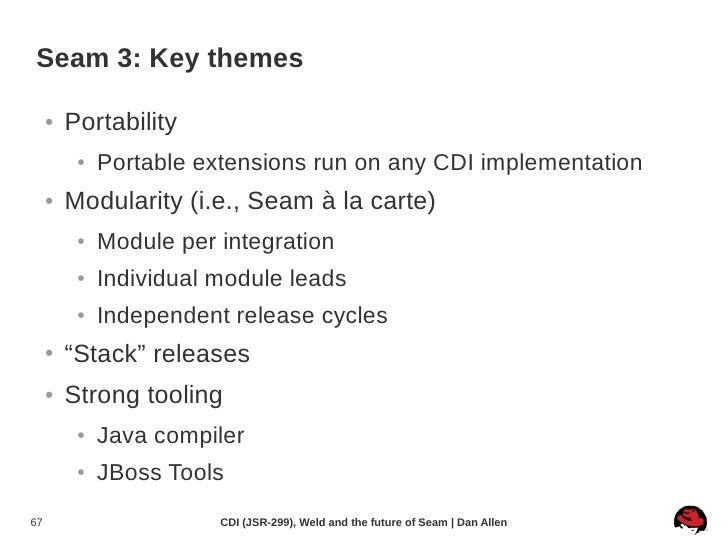 Recorded on 2010-04-30 at the Northern Virginia Software Symposium, a stop on the NFJS 2010 tour, this talk introduces JSR-299: Contexts and Dependency Injection for the Java EE platform (CDI), the new Java standard for dependency injection and contextual lifecycle management. It also covers Weld, the JSR-299 reference implementation, and explains how CDI will be used as the foundation for the next version of Seam (Seam 3).