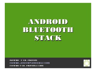 Presentation to look at Android's Bluetooth Stack for Sydney Android Meetup http://www.meetup.com/Android-Australia-User-Group-Sydney/events/227303382/