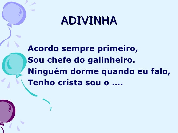 12. 12. ADIVINHA <ul><li>Acordo sempre primeiro, </li></ul><ul><li>Sou chefe do galinheiro. </li></ul><ul><li>Ninguém dorme quando eu falo, </li></ul><ul><li>Tenho crista sou o …. </li></ul>