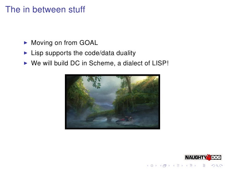 7. 7. The in between stuff Moving on from GOAL Lisp supports the code/data duality We will build DC in Scheme, a dialect of LISP!