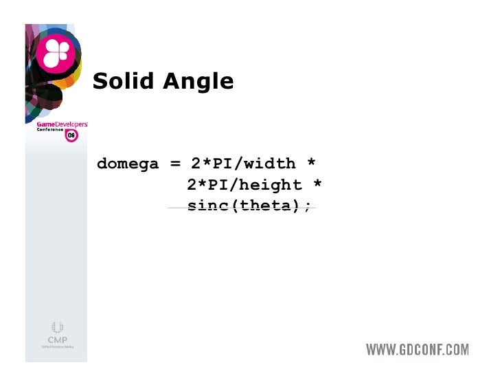 30. 30. Solid Angle domega = 2*PI/width * 2*PI/height * = (2*PI/width)*(2*PI/height)*sinc(theta); sinc(theta);