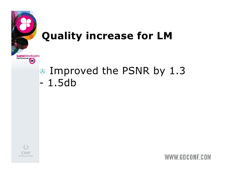 63. 63. Quality increase for LM  Improved the PSNR by 1.3 - 1.5db