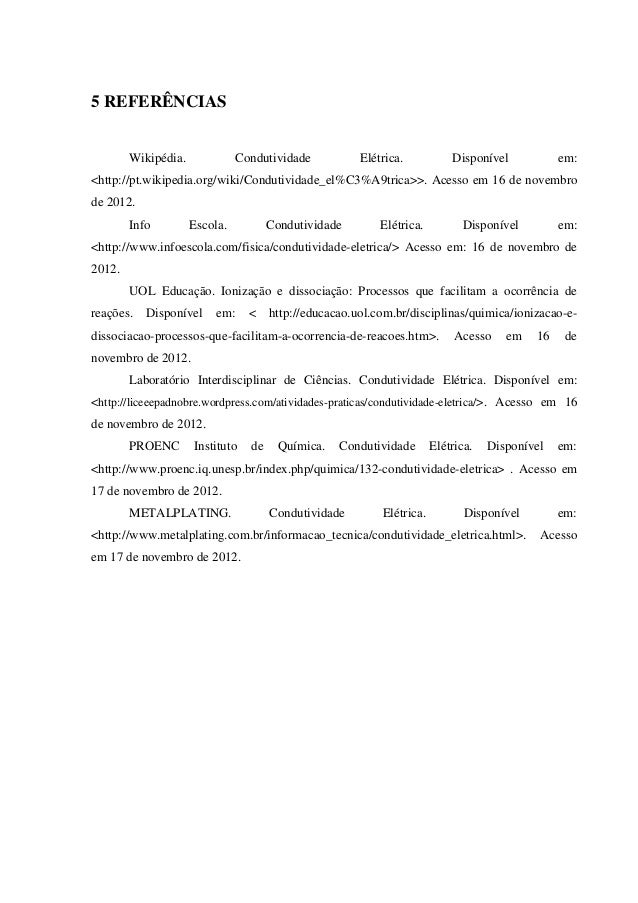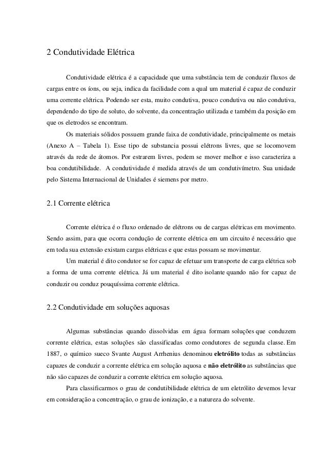 Trabalho de Química sobre Condutividade Elétrica