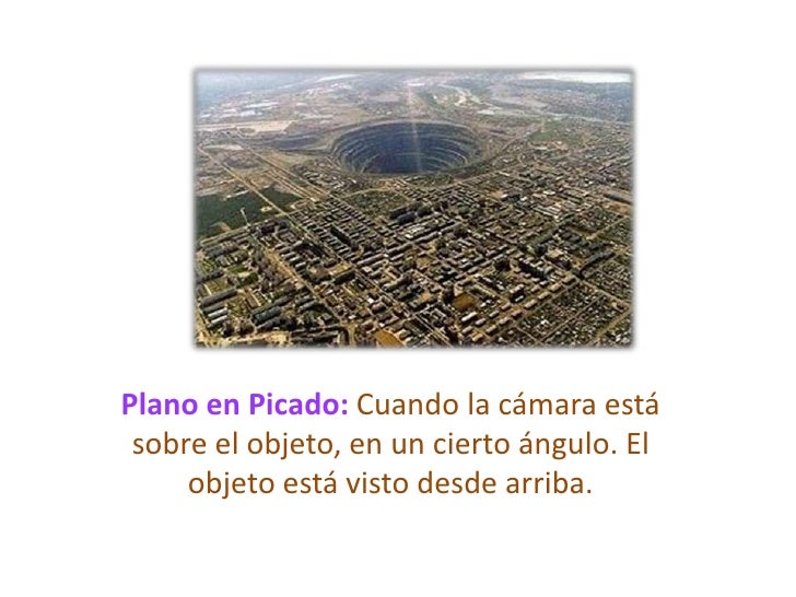 25. 25. Plano en Picado: Cuando la cámara está sobre el objeto, en un cierto ángulo. El objeto está visto desde arriba.<br />