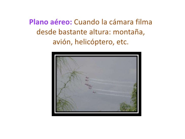 27. 27. Plano aéreo: Cuando la cámara filma desde bastante altura: montaña, avión, helicóptero, etc.<br />