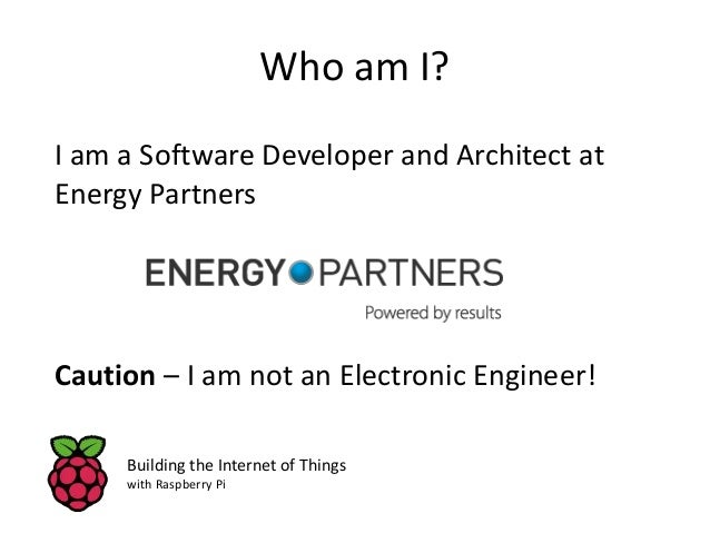 2. 2. Who am I? I am a Software Developer and Architect at Energy Partners Caution – I am not an Electronic Engineer! Building the Internet of Things with Raspberry Pi