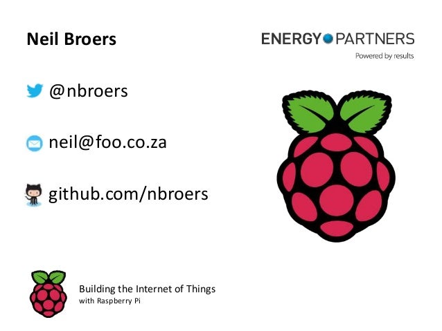 41. 41. Neil Broers @nbroers neil@foo.co.za github.com/nbroers Building the Internet of Things with Raspberry Pi