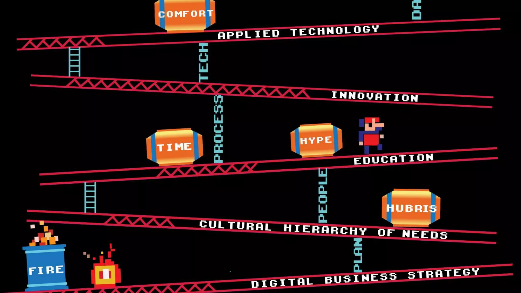 The document discusses how strategy, people, and culture can create competitive advantages for companies, but that technology and communication are needed to deliver these advantages. It also mentions digital transformation and includes references to copyright and a Twitter handle.