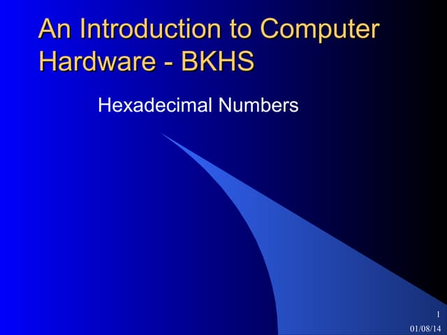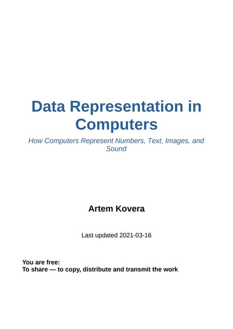 6. 6. Chapter 1 Data Representation by Daniel J. Ellard In order to understand how a computer is able to manipulate data and perform computations, you must first understand how data is represented by a computer. At the lowest level, the indivisible unit of data in a computer is a bit. A bit represents a single binary value, which may be either 1 or 0. In different contexts, a bit value of 1 and 0 may also be referred to as “true” and “false”, “yes” and “no”, “high” and “low”, “set” and “not set”, or “on” and “off”. The decision to use binary values, rather than something larger (such as decimal values) was not purely arbitrary– it is due in a large part to the relative simplicity of building electronic devices that can manipulate binary values. 1.1 Representing Integers 1.1.1 Unsigned Binary Numbers While the idea of a number system with only two values may seem odd, it is actually very similar to the decimal system we are all familiar with, except that each digit is a bit containing a 0 or 1 rather than a number from 0 to 9. (The word “bit” itself is a contraction of the words “binary digit”) For example, figure 1.1 shows several binary numbers, and the equivalent decimal numbers. In general, the binary representation of 2k has a 1 in binary digit k (counting from the right, starting at 0) and a 0 in every other digit. (For notational convenience, the 1